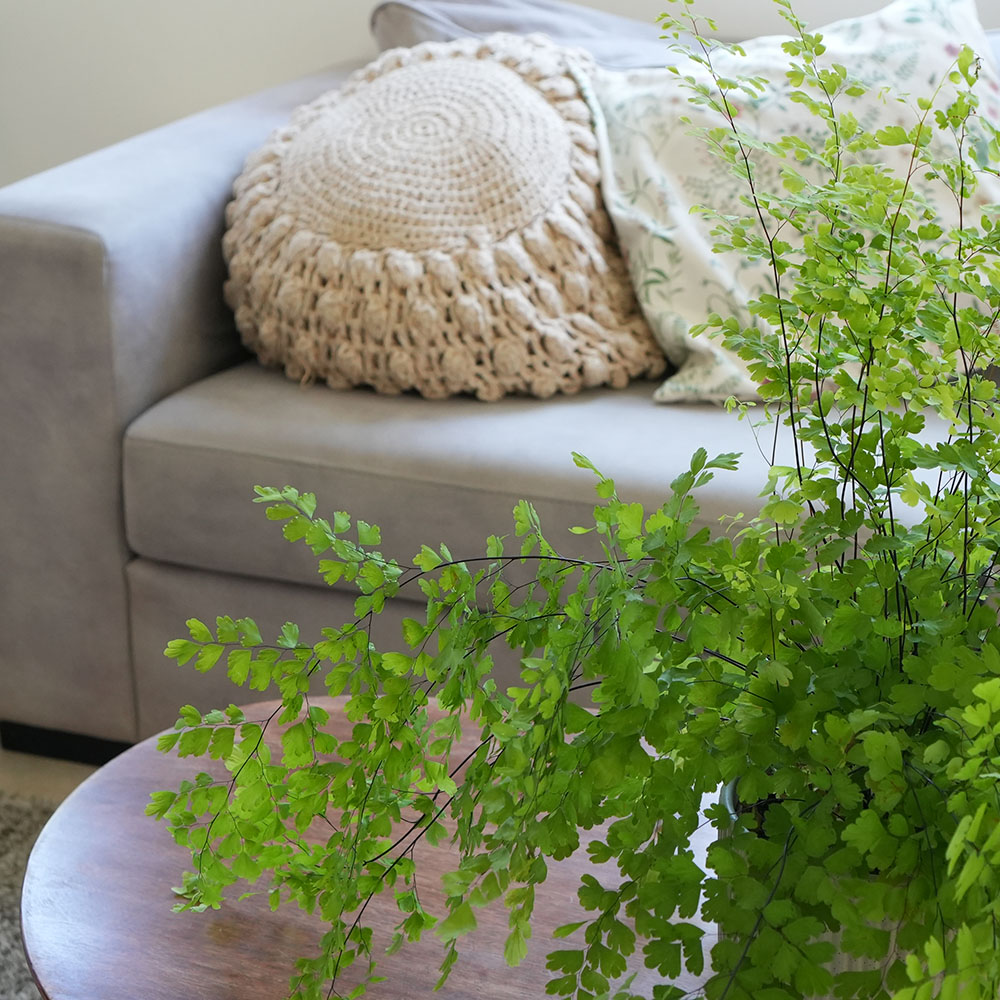 • גובה: שחקו עם גבהים שונים. הציבו צמחים גבוהים על הרצפה או בתוך עציצים על רגליים (כפי שאתם כבר יודעים, גם נוח לנקות תחתם!). השתמשו במדפים או במעמדי צמחים כדי ליצור שכבות גובה נוספות.