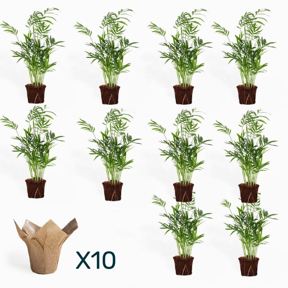 10 צמחי דקל חמדוריאה קוטר 12 סמ, בקאפ יוטה קוטר 12 סמ.